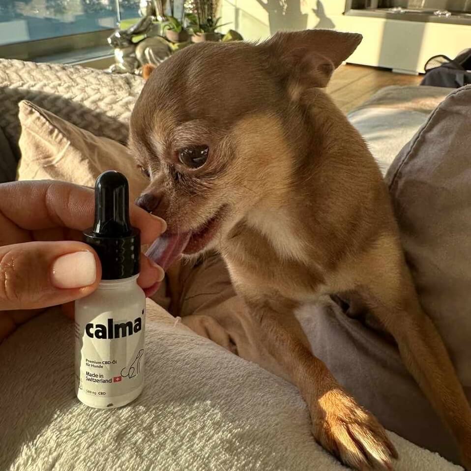 Los perros, por ejemplo, sufren a menudo ansiedad, inseguridad y estrés. Incluso pequeñas cosas, como ruidos desconocidos o un entorno desconocido, pueden provocar ansiedad en los amigos de cuatro patas. Con sus propiedades reguladoras, CALMA CBD puede equilibrar y reducir de forma sostenible las reacciones de ansiedad sin tener un efecto psicoactivo.